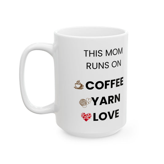 This Mom Runs on Coffee Yarn Love Mug – Crochet Mom Gift – Sip Stitch Repeat Coffee Cup – Knitting Crochet Lover Mug – Mother’s Day Gift