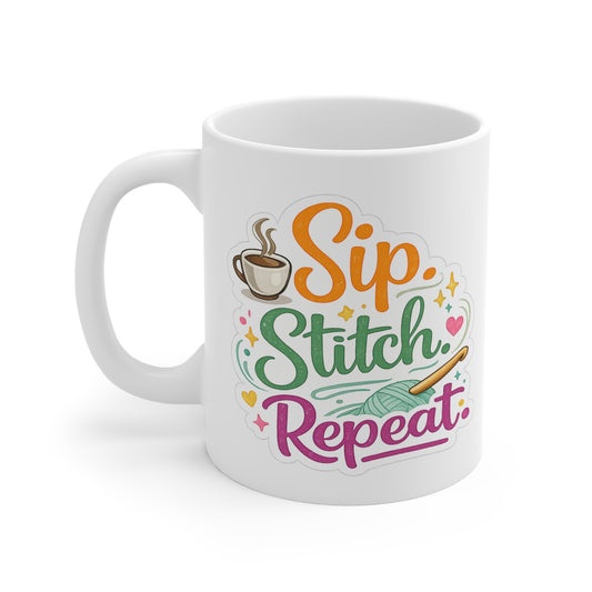 Sip. Stitch. Repeat.™ Mug – Crochet Coffee Mug, Gift for Crocheter, Yarn Lover Mug, Knitting & Crochet Gift, Crafter Coffee Cup