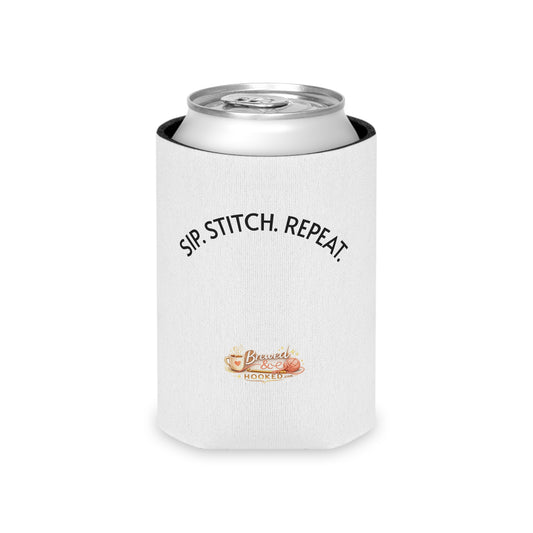 Sip. Stitch .Repeat.™ Can Cooler – Crochet & Knitting Lover Drink Cozy for Craft Nights & Coffee Breaks