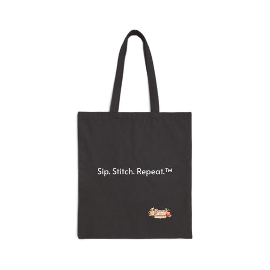 Sip .Stitch. Repeat.™ Canvas Tote Bag for Crochet Knitting Craft Project Bag