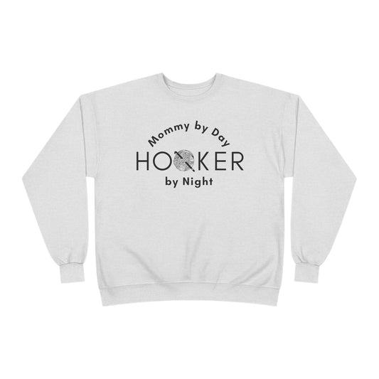 Mommy by Day Hooker by Night Sweatshirt – Funny Crochet Sweatshirt, Yarn Lover Gift, Crochet Humor Crewneck